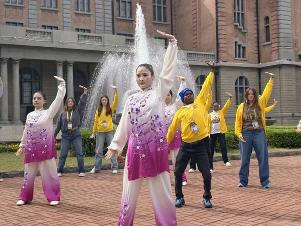 9月24日,来自世界各地的“汉语桥”学子走进天外校园,开启跨语言、跨文化的交流之旅。天外师生以语言为桥梁、以文化为媒介,为来访学子精心策划了一场丰富的文化体验活动。活动当天,校园内文化氛围浓厚。晨光中的钟楼尽显校园文脉底蕴,广场上各类文化展示活动依次开展:八段锦表演展现“天人合一”的中华哲学;天津快板以诙谐节奏呈现地方特色;小合唱旋律悠扬,传递文明互鉴理念;民族舞表演中,舞者身姿灵动,尽显东方美学;京剧表演则以铿锵锣鼓与经典唱腔,展现国粹魅力。多种传统文化形式与现代校园氛围交融,充分彰显学校作为文化交流平台的特色。活动全程,我校师生以饱满的热情和专业的素养,展现了新时代青年的文化自信与开放姿态