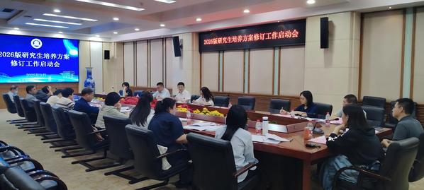 为深入贯彻党的二十大精神和习近平总书记关于教育的重要论述和研究生教育工作的重要指示精神,全面落实学校第三次党员代表大会关于研究生教育的目标与重点任务,主动应对数智时代教育转型挑战,构建具有我校学科特色、契合人才培养规律的研究生培养体系,9月26日下午,研究生院在逸夫楼莎翁厅召开2026版研究生培养方案修订工作启动会,副校长朱鹏霄出席会议,研究生院院长杨丽娜主持会议,各研究生培养相关负责人参加会议。朱鹏霄强调培养方案修订是推进研究生教育综合改革的核心抓手,要立足国家战略与区域发展需求,以数智赋能重塑培养理念;要坚持需求导向、坚持创新引领、坚持分类培养,将学科优势与交叉融合特色融入课程体系;要兼顾