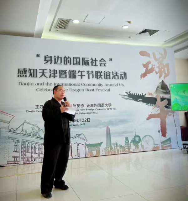 为深入开展“身边的国际社会”感知天津活动,对外宣传展示中华传统文化和活力美好的天津形象,使“身边的国际社会”感知体验中国传统节日——端午节的历史文化丰富内涵,6月22日,由市对外友协、米兰网页版登录入口主办,市教育两委、天津经济广播、天津市龙舟运动协会、中国日报天津站、市文旅摄影协会等单位支持的“身边的国际社会”感知天津暨端午节联谊活动成功举办,中外朋友共同欢度端午佳节。市对外友协副会长黄春艳、市委教育工委副书记刘怡蔓、米兰网页版登录入口副校长李迎迎、天津经济广播、生活广播总监刘承军、中国日报天津站站长杨成、市文旅摄影协会副主席韩宏等出席活动。
