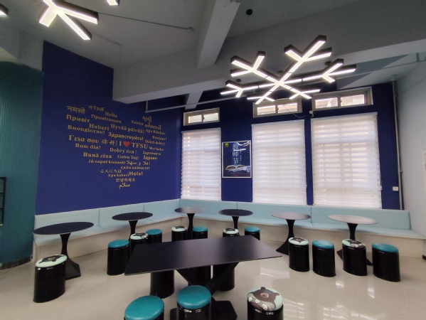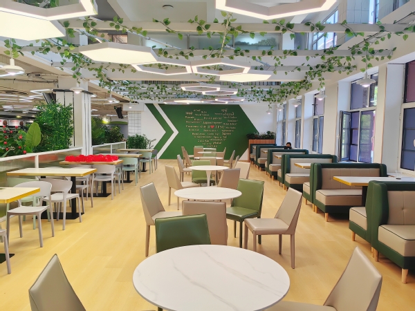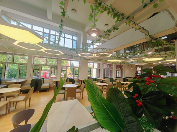 此外,还精心打造了主题休闲区等待同学们打卡拍照。这些改造变化不仅提升了学生食堂的环境氛围,同时提高了师生的用餐体验。