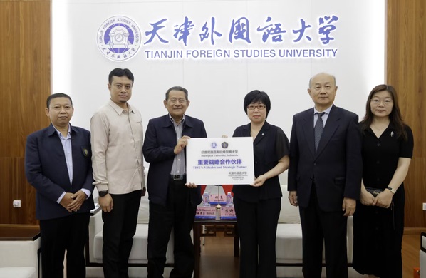 会见后,双方授牌互为“重要战略合作伙伴”。努赫菲尔·哈纳尼一行还参观校史馆、上合国家文化风情展,实地查看印尼文化体验室装修情况以及印尼语能力考试系统运行情况