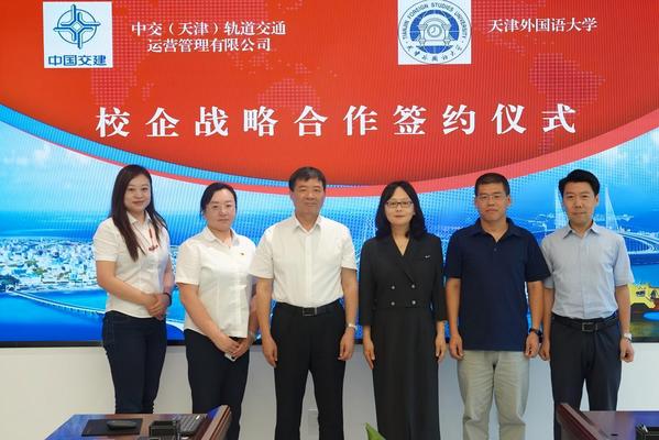 中交(天津)轨道交通运营管理有限公司总部位于天津,是主要从事城市轨道交通、铁路投资与运营的国际化公司,承担中国交建轨道交通运营的平台发展职能。我校与中交(天津)轨道交通运营管理有限公司以“优势互补、人才共育、成果共荣”为核心理念,建立战略合作关系,紧扣“产教研用”协同体系,不仅能充分发挥我校科研和人才平台特色,助力企业破解语言服务瓶颈,提升员工涉外沟通能力;同时,通过搭建校企实践育人基地,也为我校淬炼“语言+专业+技术”复合型人才,贯通“培养-实践-就业”人才成长链条提供了良好契机。