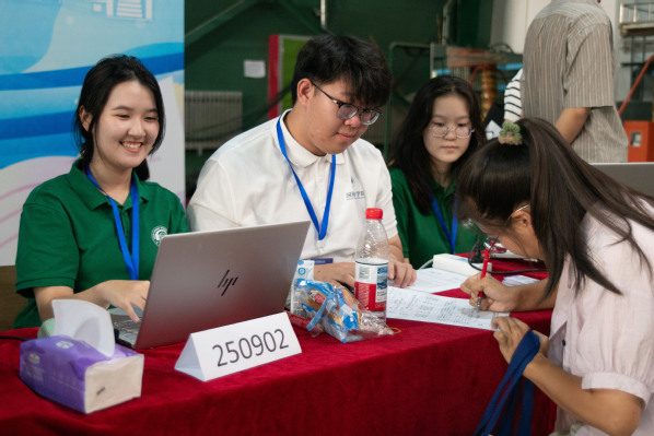 鲜红的欢迎横幅在晨光中飘扬,各学院迎新点位上创意展板林立,身着天外蓝制服的志愿者们早早守候在校门、报到处和宿舍楼前,用热情的笑脸和细致的指引迎接来自五湖四海的“新天外人”。