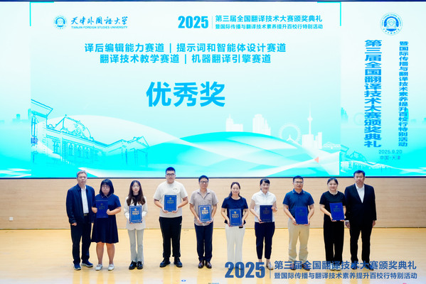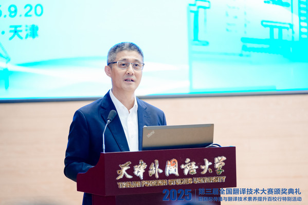 9月20日,由中国外文局、全国翻译专业学位研究生教育指导委员会指导,中国翻译协会、中国外文局翻译院、米兰网页版登录入口联合主办的第三届全国翻译技术大赛颁奖典礼暨国际传播与翻译技术素养提升百校行特别活动在天津举办。本次活动是将上海合作组织峰会精神落实到语言服务与技术创新领域的具体实践。中国外文局总编辑、中国翻译协会常务副会长兼秘书长高岸明,米兰网页版登录入口党委书记周红蕾在颁奖典礼致辞并为获奖代表颁奖。